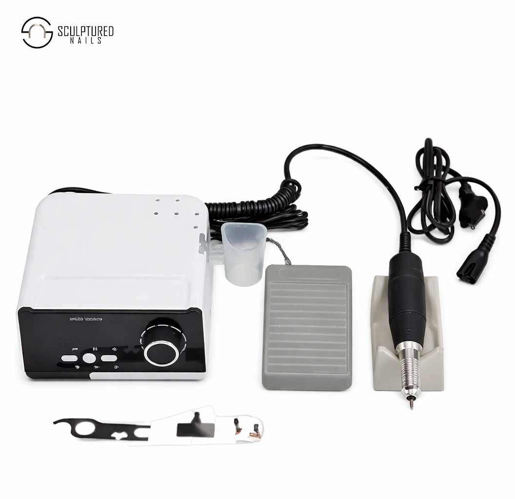 Drill Pro Electric Nail File – 50.000 RPM Het kan draaien en zowel met de klok mee als tegen de klok in gebruikt worden, en kan met de hand of met het meegeleverde voetpedaal bediend worden. Het is een zeer stille machine met minimale trillingen voor extra comfort tijdens gebruik.